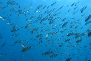 カンパチが成長していて、一瞬ブリかと勘違いしそうなくらい大きなカンパチとその他いつものカンパチの群れが目の前をビュ~っとすごいスピードで通過するので写真は・・・