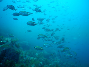 泳いでいて面白かったのが、イサキの群れが来て、次にアジの群れが来て、
