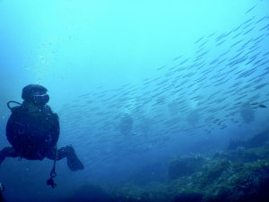 スズメダイに囲まれてイサキが横切り、アジとカマスに取り囲まれる楽しさを感じてもらえたでしょうか。